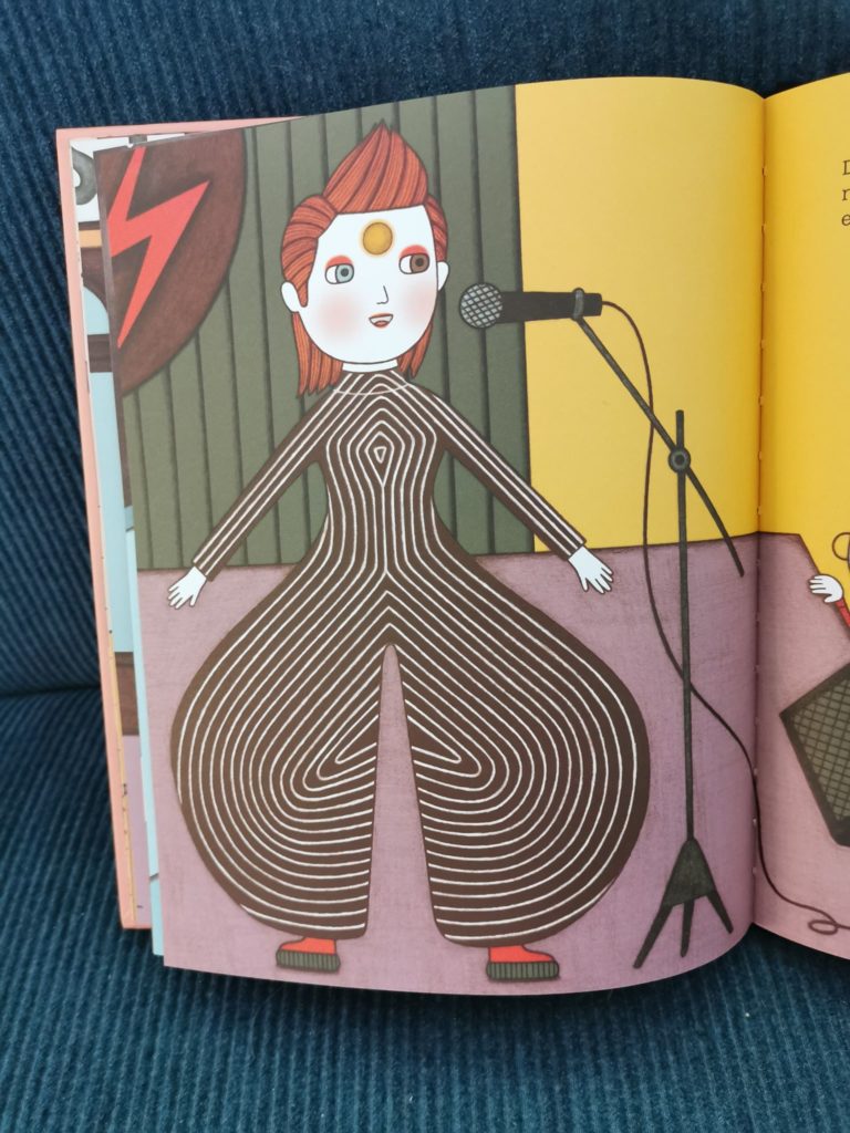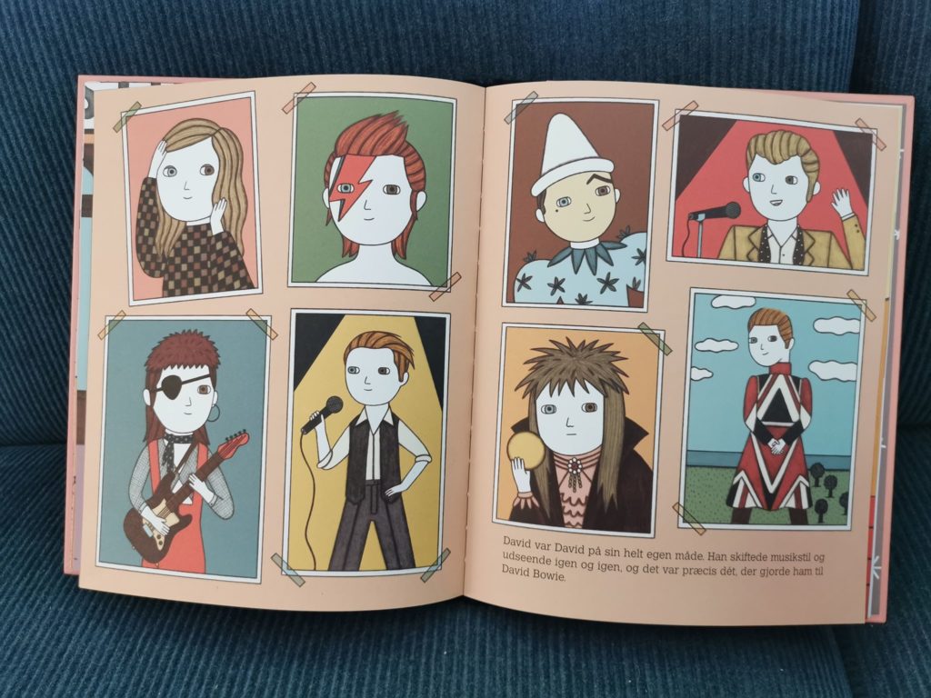 Bogen om David Bowie er måske umiddelbart mere børnevenlig og underholdende.