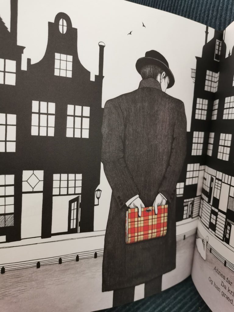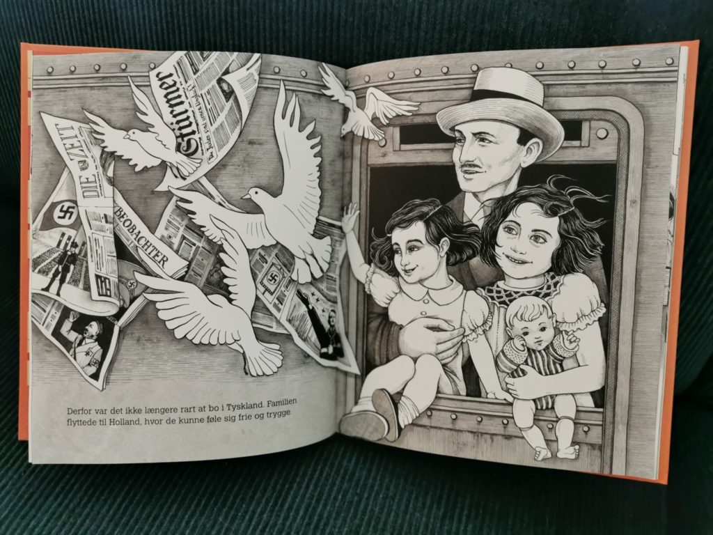 Bogen om Anne Frank har sort/hvid tegninger, hvilket jeg synes giver den et klassisk og sørgmodigt udtryk.