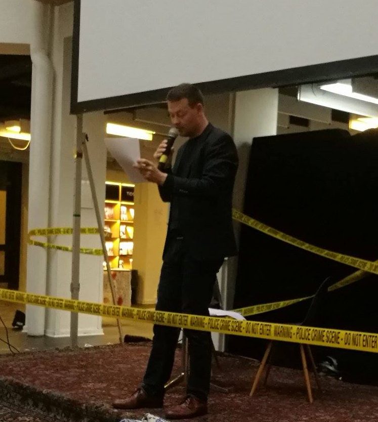 Han læste højt fra 1. kapitel i sin kommende roman “Kærlighed for voksne” (af Anna Ekberg) og jeg fik faktisk gåsehud. Den handler kort fortalt om et ægteskab, der går galt og hvor onde mennesker kan blive, når de går gennem en skilsmisse.