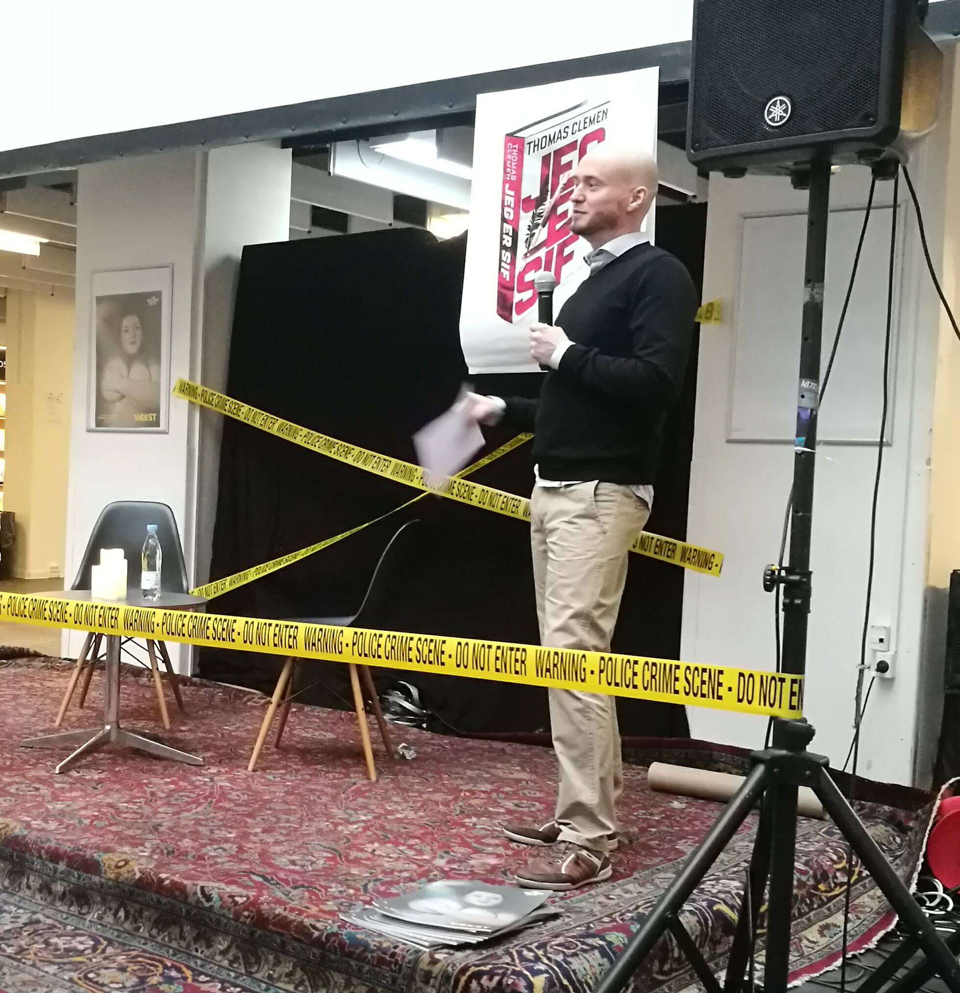 Thomas Clemen snakkede om hvordan en krimi bliver til. Han fortalte (med hjælp fra en fin graf) om de forskellige stadier man går igennem som forfatter. Han fortalte blandt andet om: