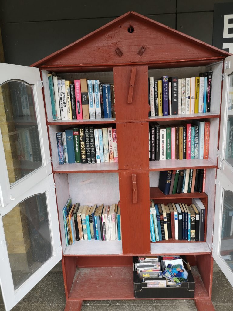 Ved DanHostel i Kerteminde er der et bogbytteskab.